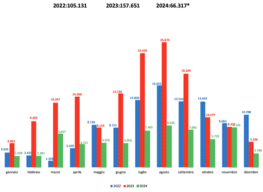 [32]Ministero dell’Interno, Cruscotto Statistico Giornaliero, December 31, 2024, http://www.libertaciviliimmigrazione.dlci.interno.gov.it/sites/default/files/allegati/cruscotto_statistico_giornaliero_31_dicembre_2024.pdf